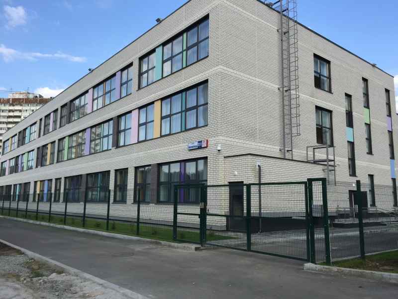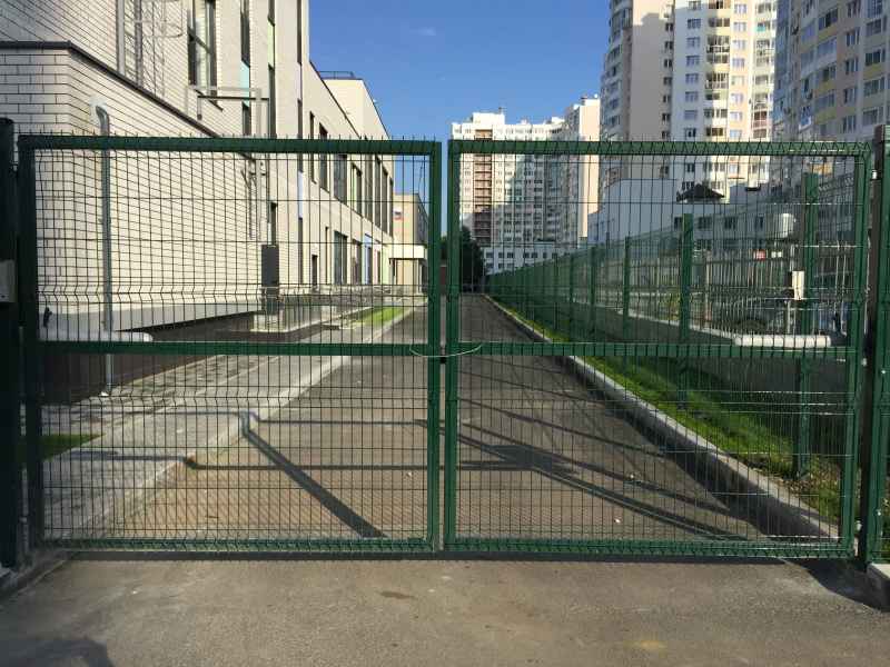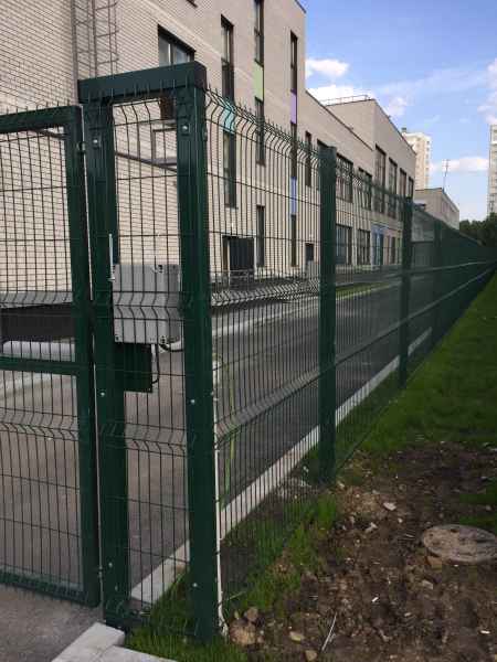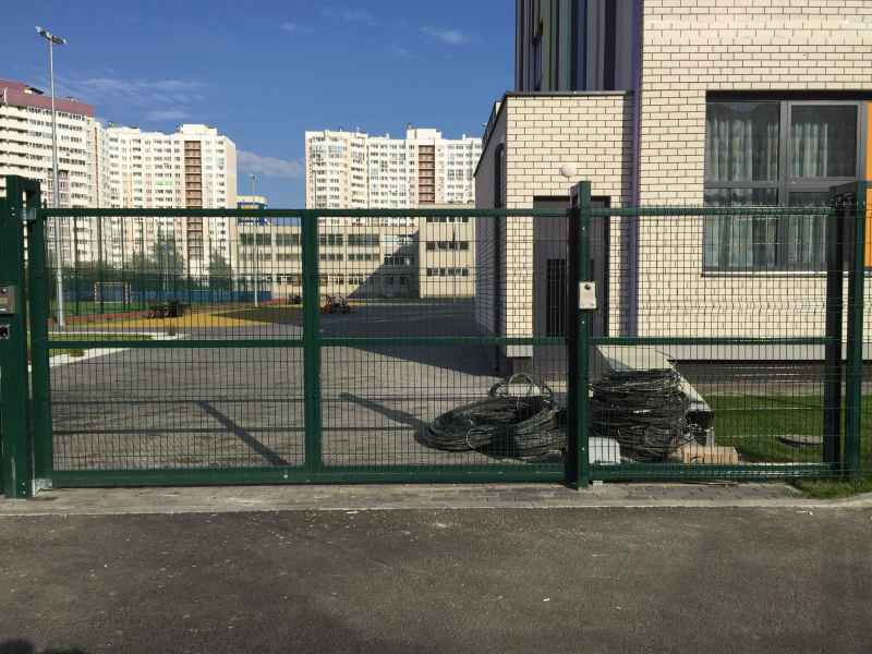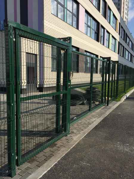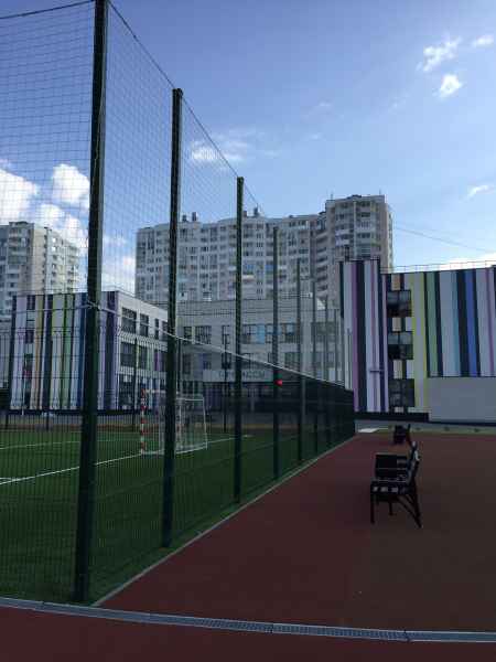 Установка основного ограждения школы, а также установка ограждения внутри территории для футбольной площадки. В качестве основного ограждения были выбраны панели с характеристиками 2030х3000, у спортивной площадки для игры в футбол панели 2430х3000 с последующим навешиванием полипропиленовой сетки препятствующей вылета мяча за пределы площадки. Опоры устанавливались по принципу фланцевого соединения анкерами в подготовленное бетонное основание. В периметр встроены калитки и ворота, распашные и откатные, выполненные в едином решении с ограждением. Монтаж осуществлялся силами заказчика.