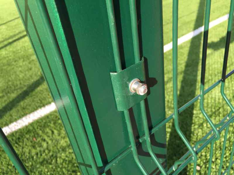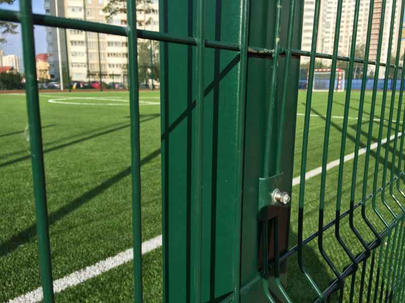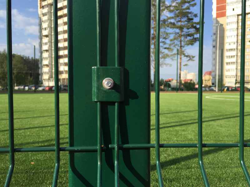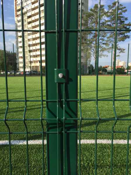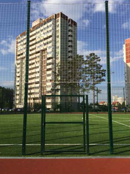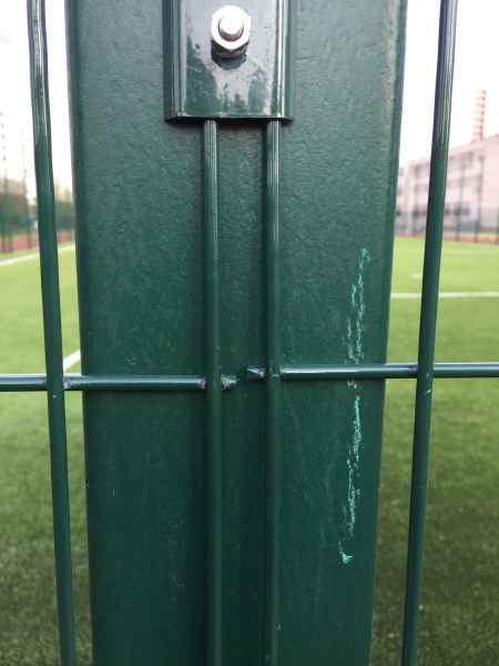 В качестве основного ограждения были выбраны панели с характеристиками 2030х3000 с опорами повышенного сечения 80х80х2мм, у спортивной площадки для игры в футбол панели 2430х3000 с опорами 100х100х3мм. Опоры устанавливались по принципу фланцевого соединения при помощи анкеров в заранее подготовленное бетонное основание. В периметр встроены калитки и ворота, распашные и откатные, выполненные в едином решении с ограждением. Монтаж осуществлялся силами заказчика.